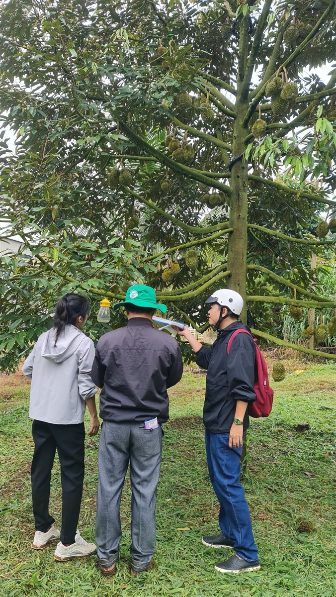 Công ty Ban Mê Green Farm thực hiện mã vùng trồng tại vườn sầu riêng ở Daklak.
